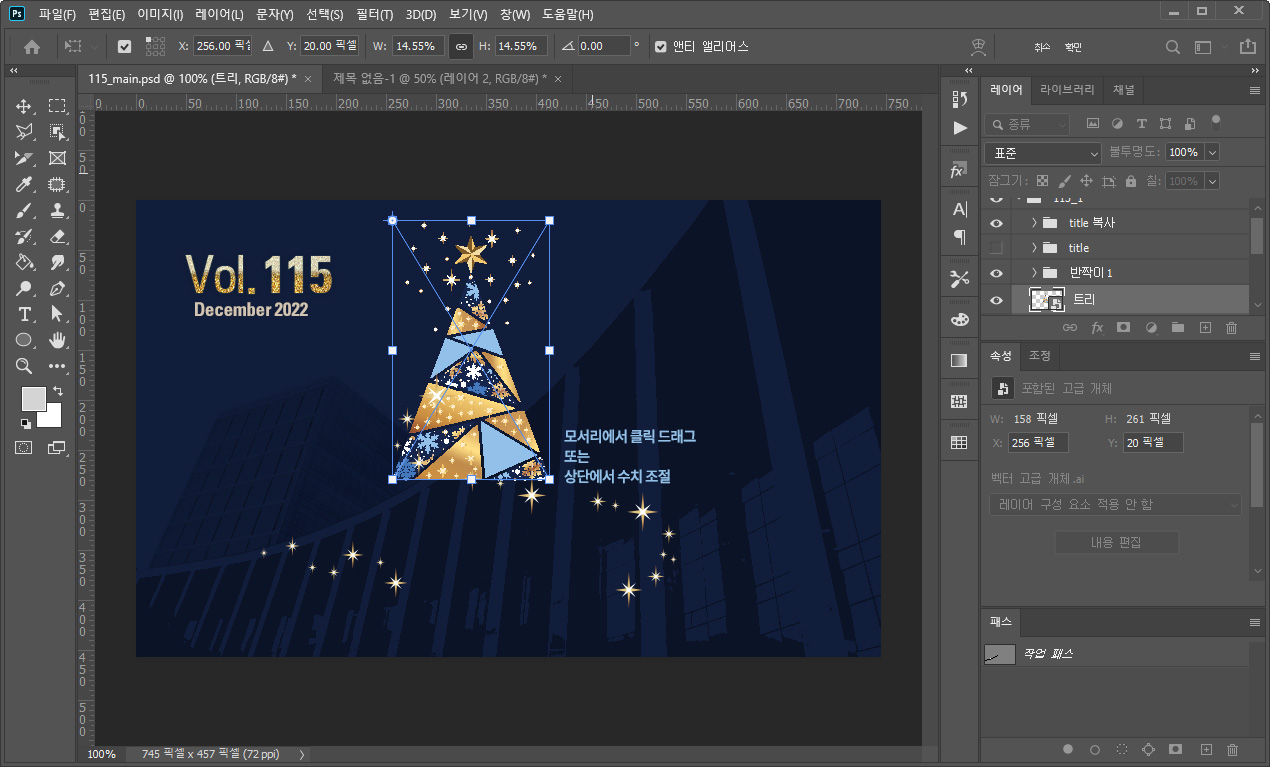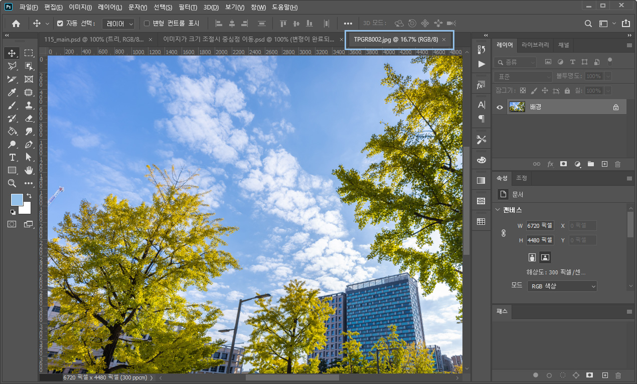 다음에 큰 사진이 필요해지면 다시 크게 만들려면 이미지가 깨지기 때문에 작업시에는 반드시 복사해서 다른 작업창에 옮겨서 작업 하는 것이 안전합니다.