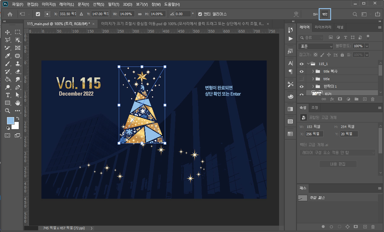 5. 변형이 완료되었다면 반드시 Enter 해주거나 오른쪽 상단에 확인(V)을 눌러준다!